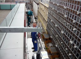 Die Reparatur von Fassadenelemente, Verblendsteine und Glasschäden ist oft ein dringender Not. Ein Fassadengerüst und die Genehmigungen dazu nehmen zu viel Zeit in Anspruch, die Hängebrücke ist dagegen eine schnelle und praktische Lösung für solchen Aufgaben.